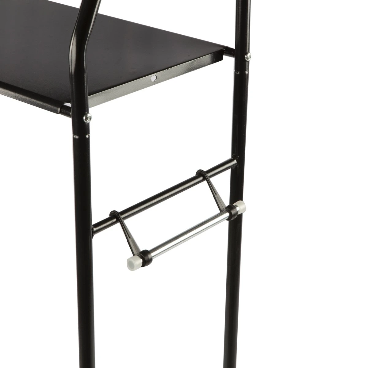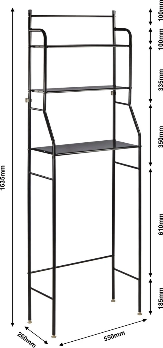 Op zoek naar een luxe stellingkast voor boven je wasmachine of toilet? Dit breed inzetbare, zwarte opbergrek is gemaakt van een metalen frame en beschikt naast een luxe design ook over een goede kwaliteit. Het opbergrek is stabiel en licht, je kunt er wasmiddelen, handdoeken of iets dergelijks in opbergen. Boren en gereedschap is ook niet nodig, monteren is erg makkelijk en snel. Met 3 laden en een ophangrek heeft u genoeg ruimte om al uw spullen netjes te sorteren. Er is goed nagedacht over het ontwerp, het past mooi boven ieder toilet of wasmachine.