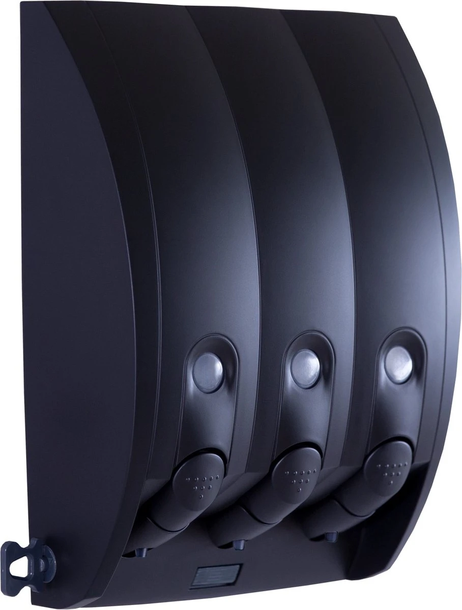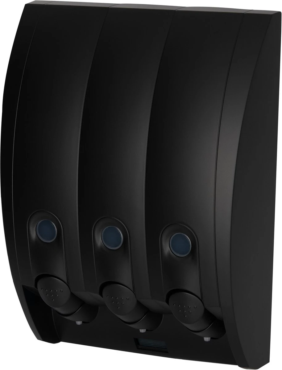 Zoek je een mooie en degelijke zeepdispenser voor in je badkamer? Deze zeepdispenser is gemaakt van kunststof en heeft een moderne mat zwarte look. De mat zwarte kleur zorgt voor een moderne en stijlvolle look en past in iedere badkamer. De reservoirs hebben een kijkvenster zodat je kunt zien hoeveel er nog in zit. Losse flesjes en flacons zijn verleden tijd. Alles overzichtelijk bij elkaar en zonder hinderlijke druppels door het uniek gepatenteerde anti-lek systeem. De kunststof uitvoering zorgt er voor dat er geen roest op kan treden.