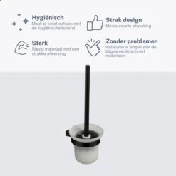 Luxe Toiletborstel + Houder – RVS – Wc Borstel – Toilet – WC – Toiletborstel – Zwart – 25 X 12.5 Cm
