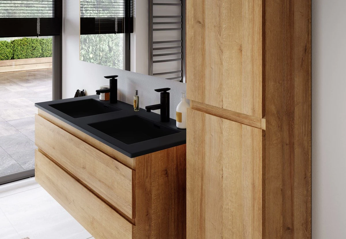 Badkamermeubel Angela 120cm Eiken – Badmeubel Met Zwarte Wastafel