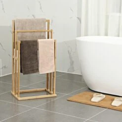 Badkamer Rekje Met 3 Etages – Opbergrek Met Planken – 66 Cm Hoog En 60 Cm Breed – Natuurlijke Bamboe