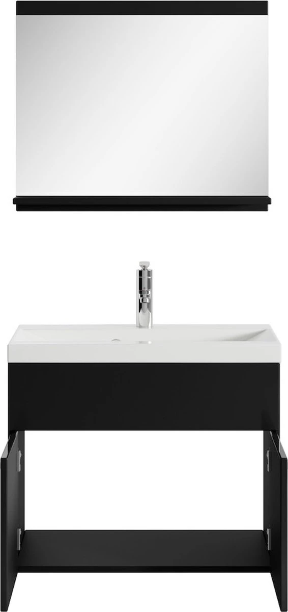 – De wastafelkast is uitgevoerd met twee deuren