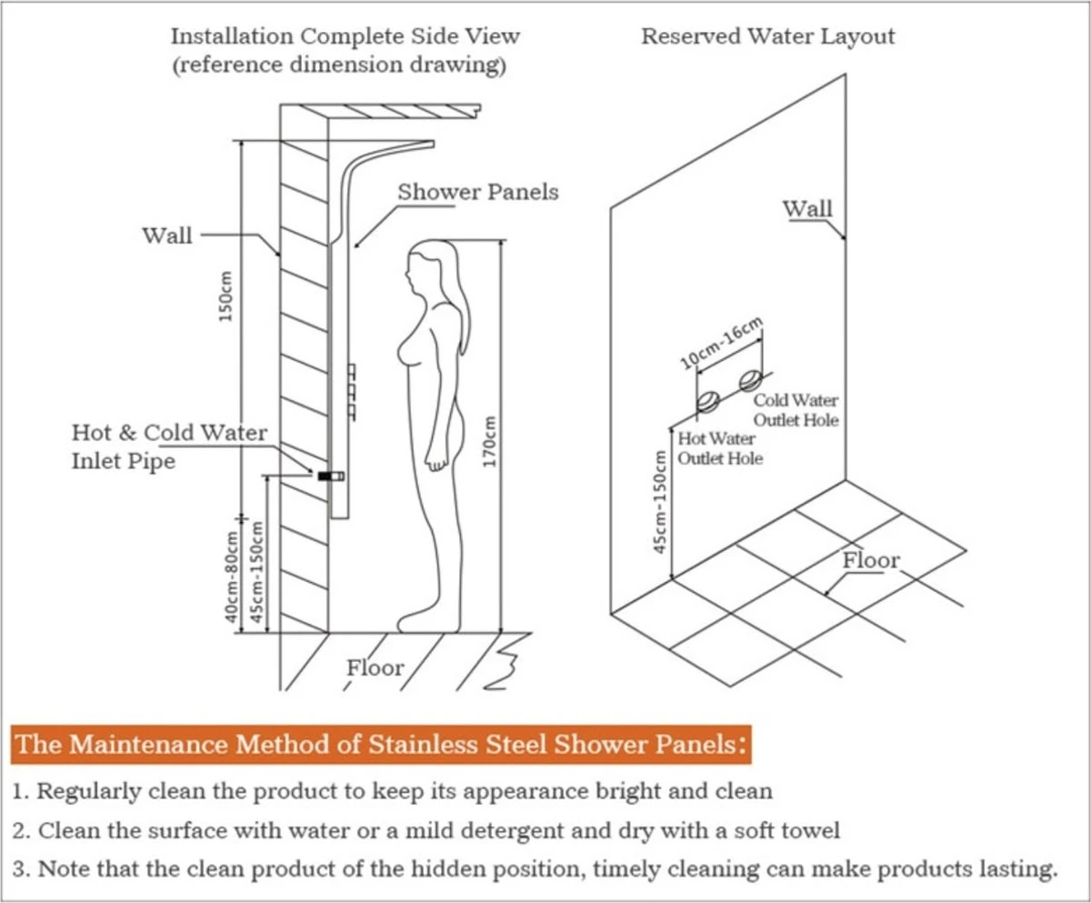 ✅ Gemakkelijk te installeren – Het douchepaneel wordt geleverd inclusief alle benodigde installatie accessoires. Hij kan gemakkelijk en snel, stevig aan de muur worden gemonteerd.