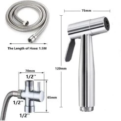 Merkloos Bidet Handdoucheset Uit Geborsteld RVS – Shattaf – Met Slang, T-stuk & Wandhouder