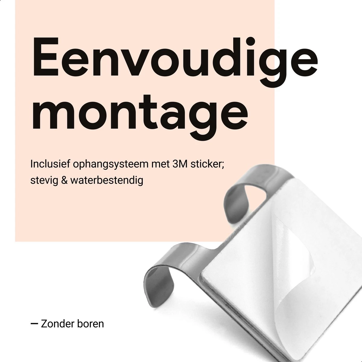 De Douchewisser is eenvoudig en zonder boren te bevestigen op een gladde en vaste ondergrond waardoor de douchewisser niet telkens meebeweegt met het openen en sluiten van uw douchedeur met nadelige gevolgen als vallen, schade en een vervelend klapperend geluid van dien zoals bij andere modellen.