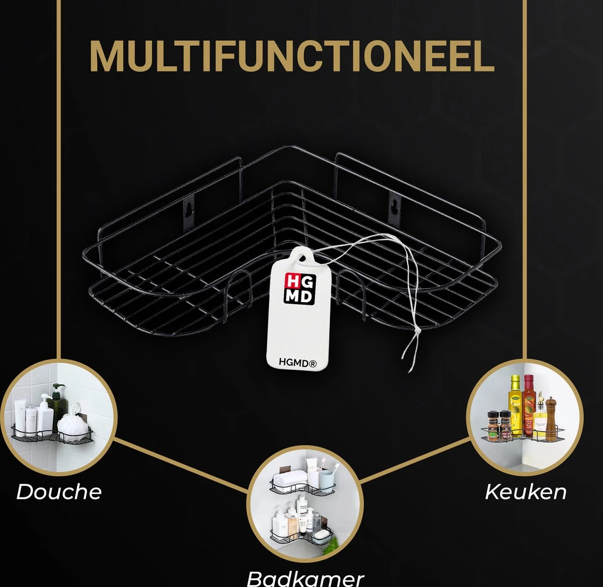 Ons doucherek is gemaakt van hoogwaardig aluminium en met een speciale coating netjes afgewerkt tegen enige vorm van roest. Berg al je spulletjes netjes op in dit hangend hoek doucherek met fijne vormgeving en matte afwerking. Super handig te plaatsen in een hoek, voor optimale gebruik van je douche cabine.
