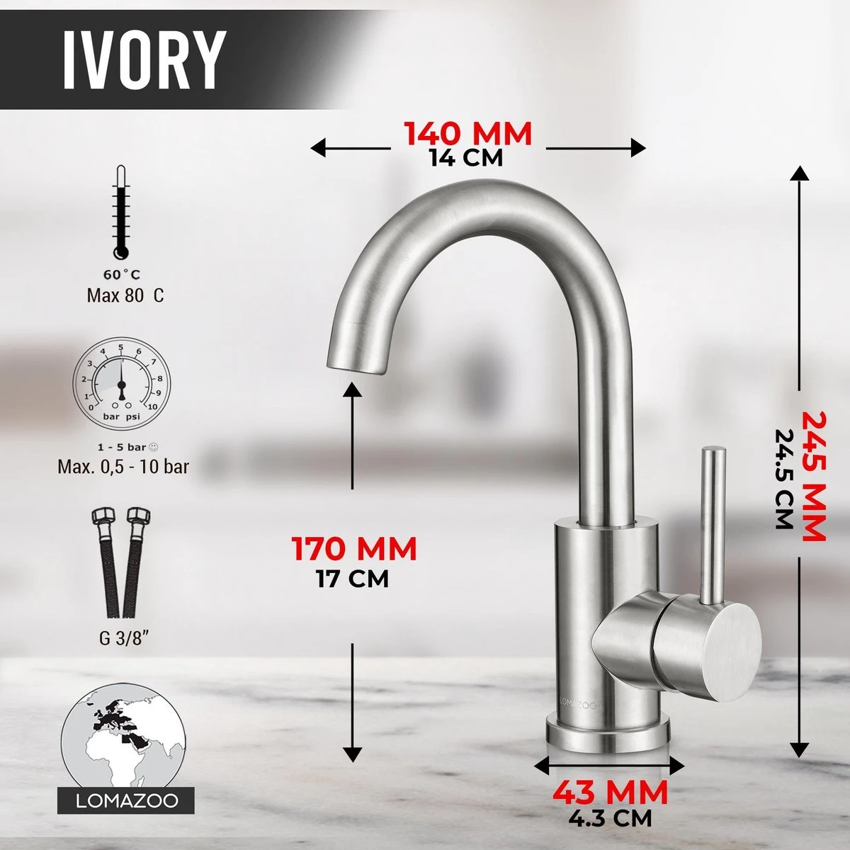 • LOMAZOO® wastafelkraan RVS geborsteld Ivory