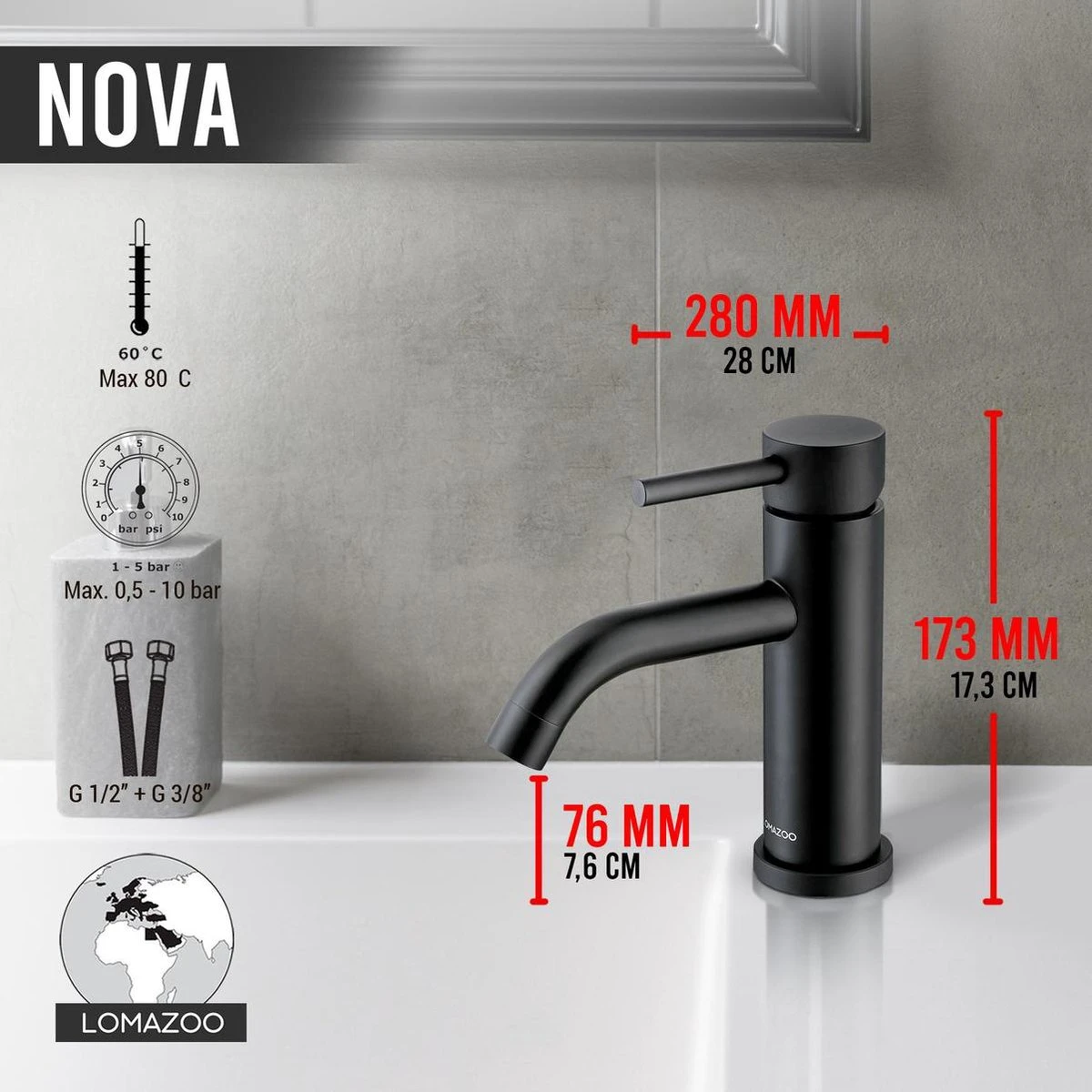 •LOMAZOO® wastafelkraan zwart Nova