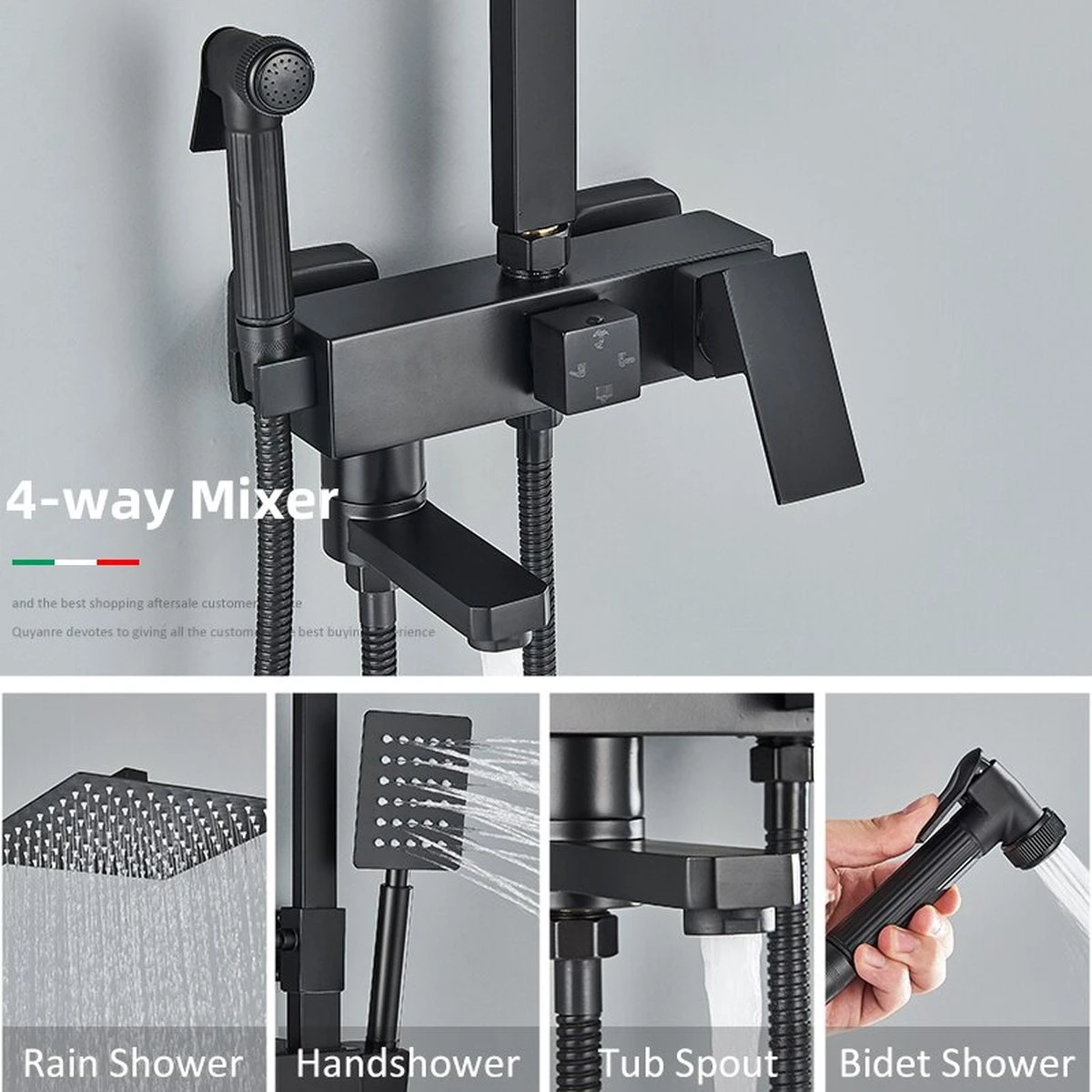 Laat jezelf verassen door dit complete 4 In 1 wassysteem waar voor iedereen wel een goede stand bijzit. Deze luxe douchekraan heeft maar liefst 4 verschillende manieren hoe je jezelf kan wassen en is erg makkelijk te monteren. De mooie Black look wordt een echte eyecatcher en past bij elke badkamer.
