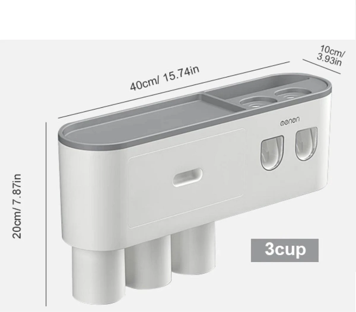 De organizer wordt geleverd met drie bekerhouder die je kan gebruikt om je mond te spoelen. Ook heeft de organizer verschillende opbergvakken zoals een ingebouwde lade waar je kleine accessoires in kwijt kan.