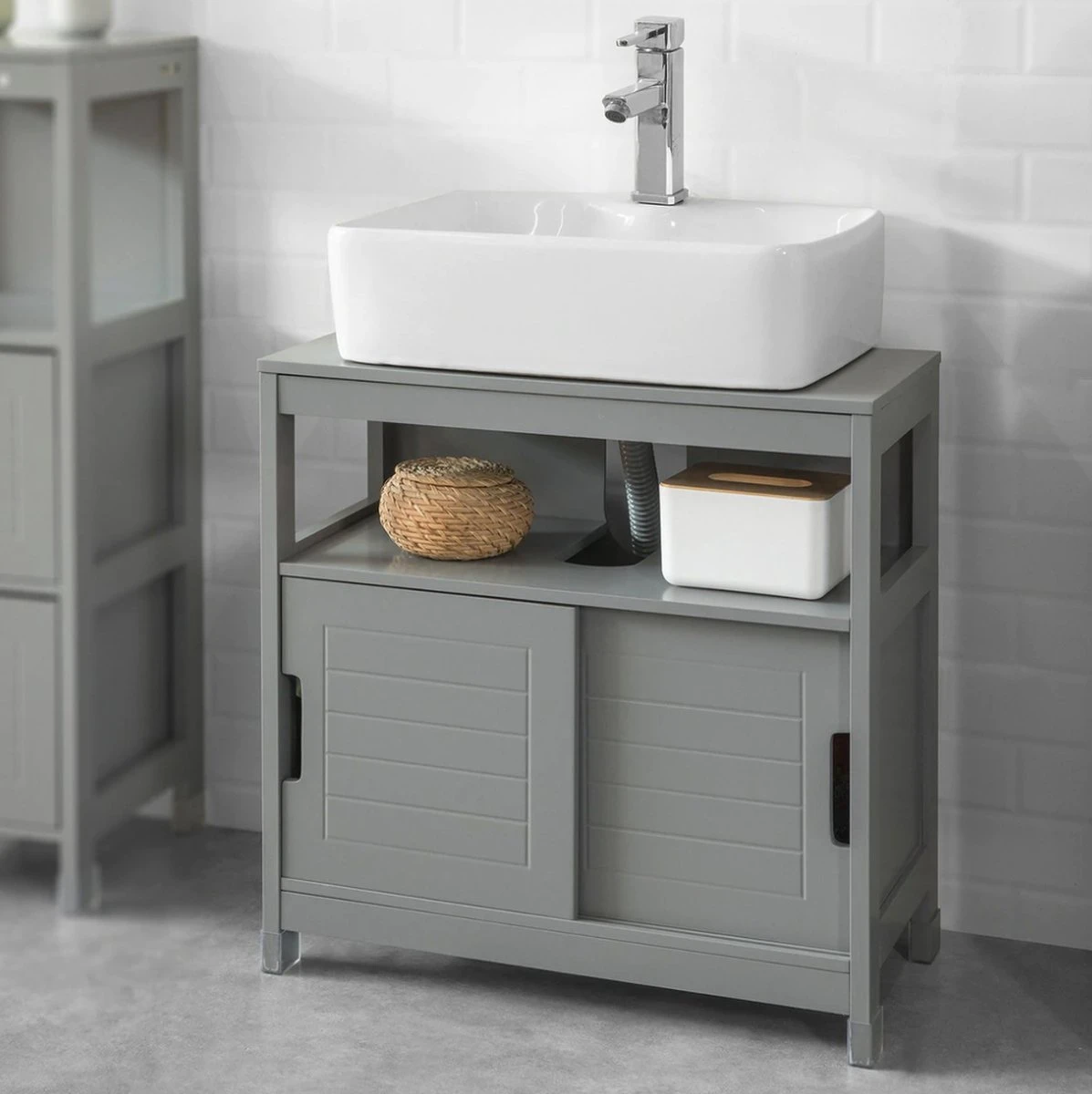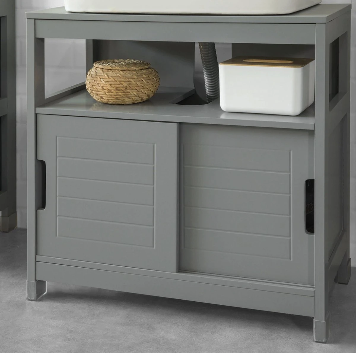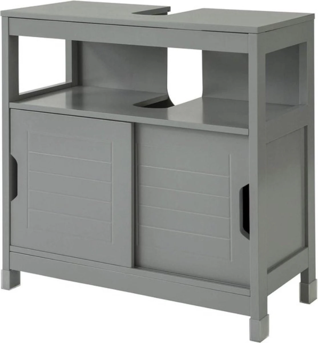 Handige kast: 2 schuifdeuren en 1 open plank bieden veel opbergruimte, de ideale oplossing om je badkamer opgeruimd te houden.