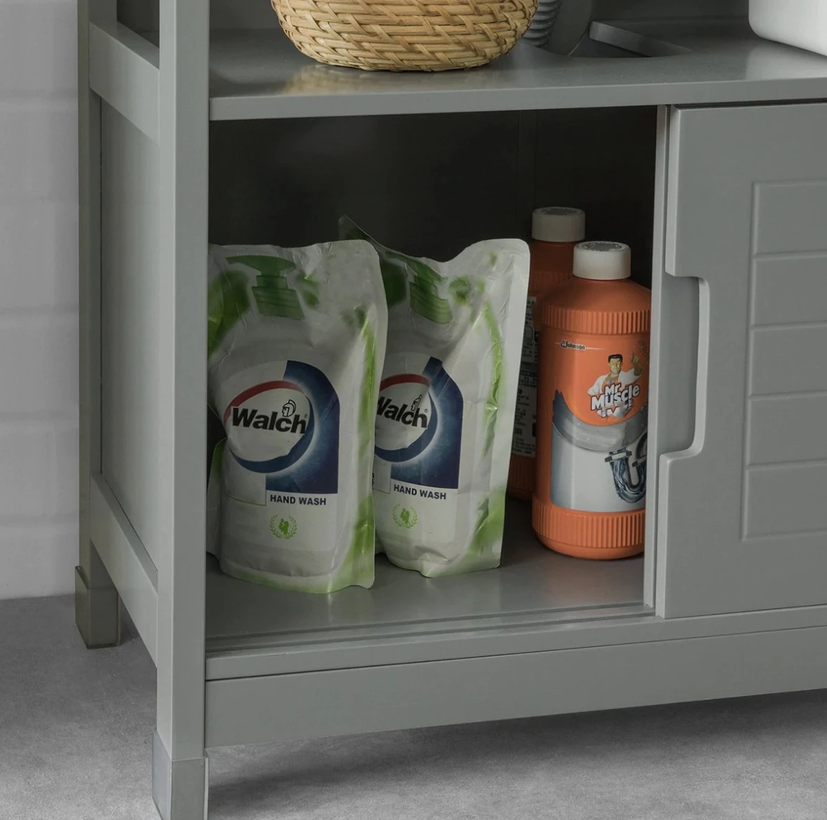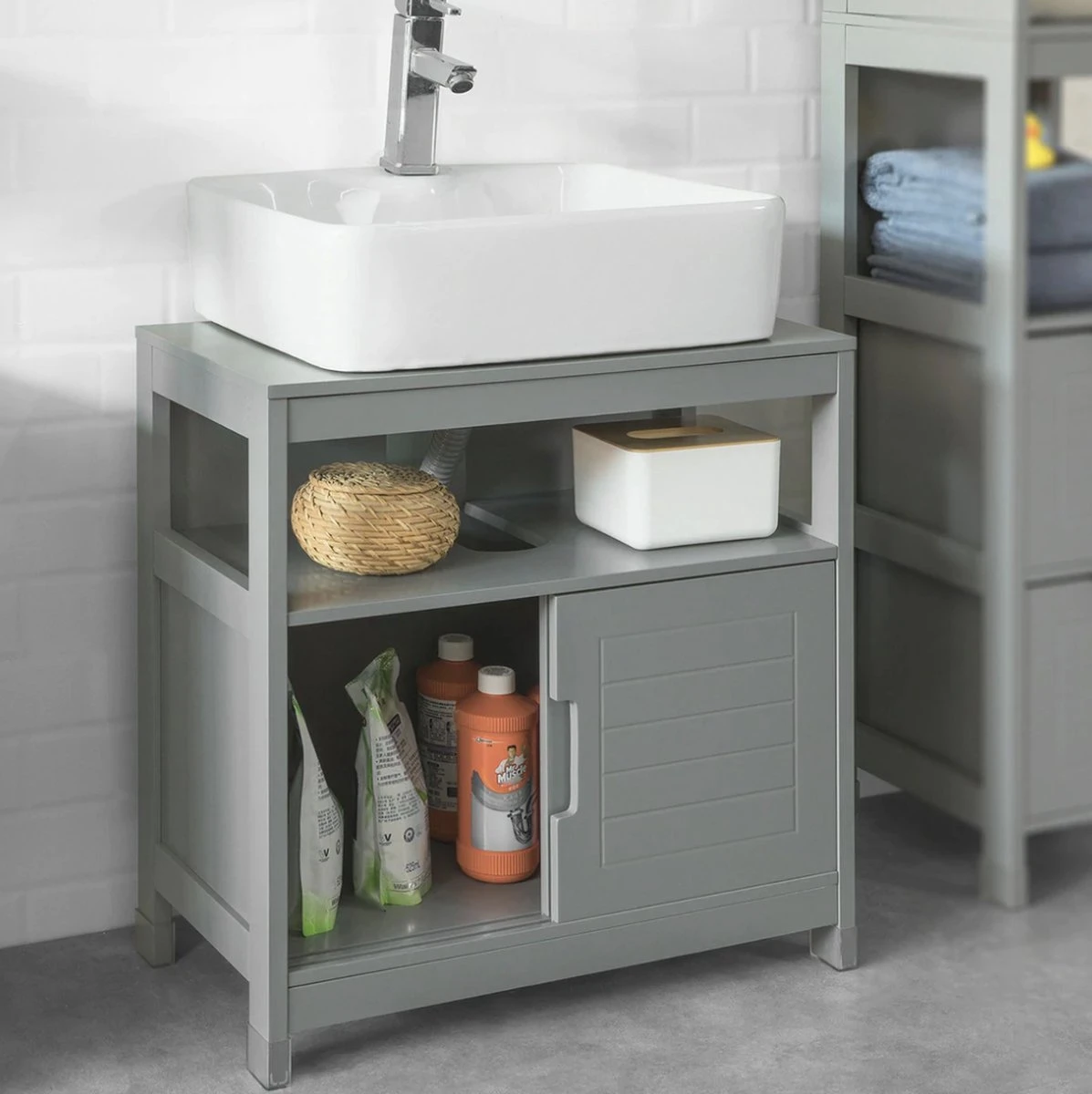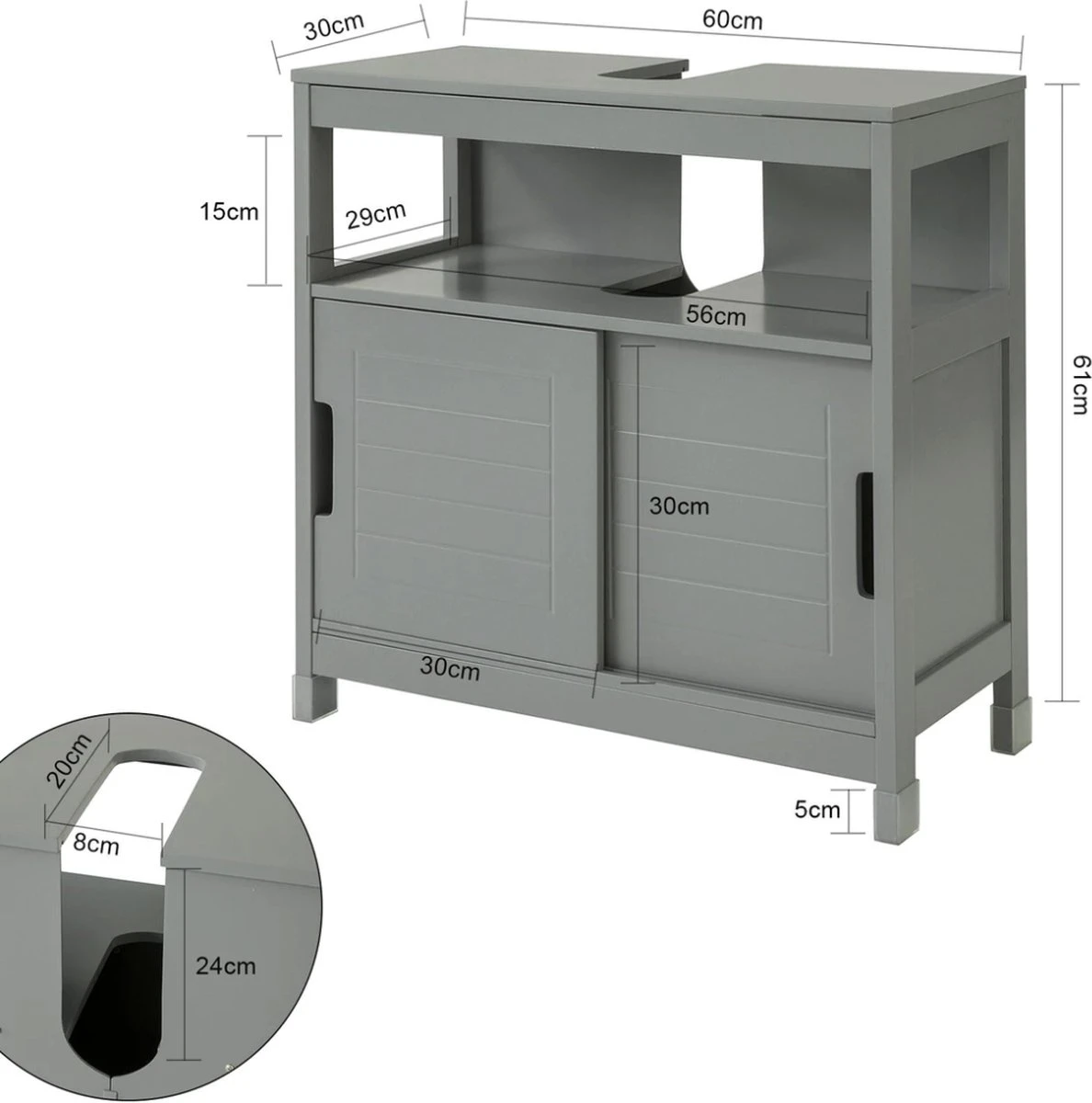 Handige kast: 2 schuifdeuren en 1 open plank bieden veel opbergruimte, de ideale oplossing om je badkamer opgeruimd te houden.