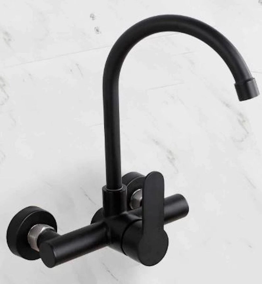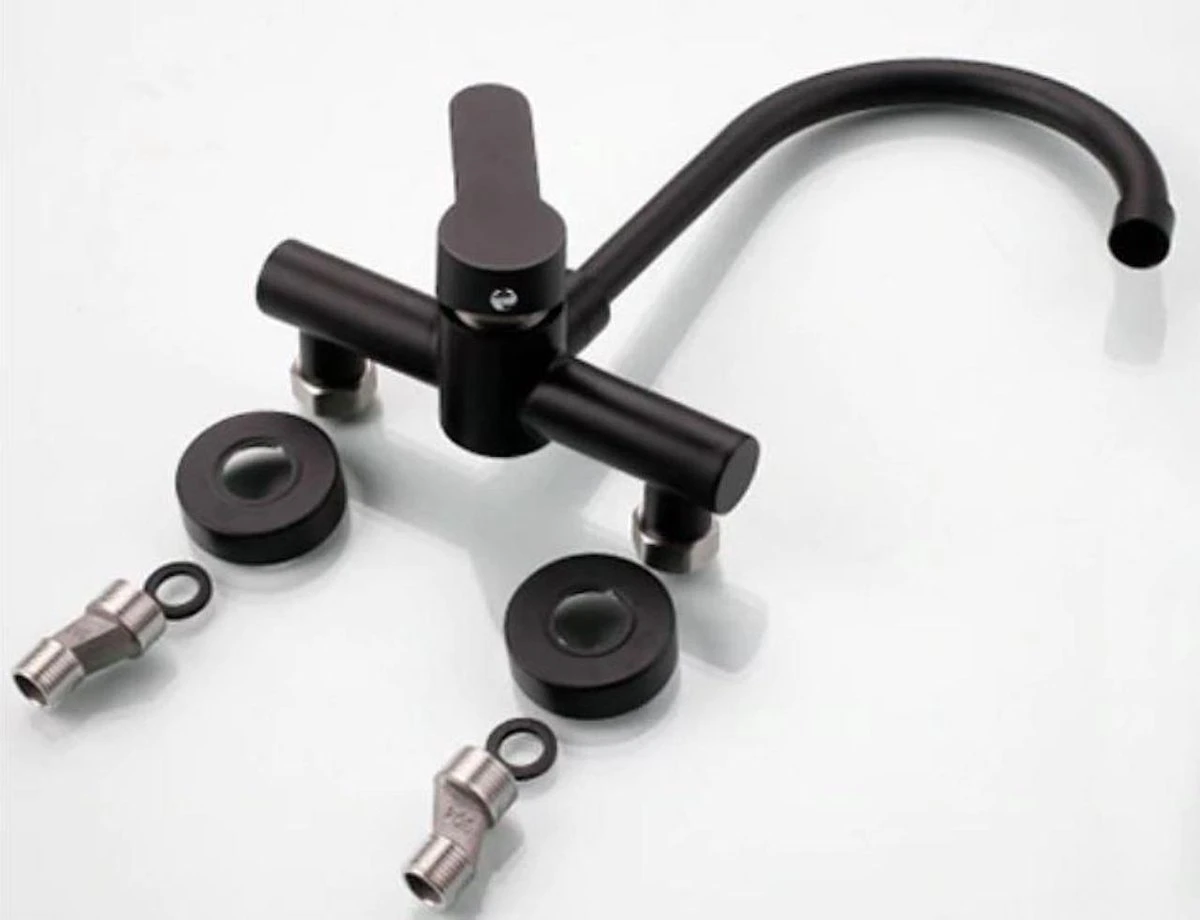 Merkloos Inbouw Wastafelkraan 8654-CB – Muurkraan – RVS – Mat Zwart