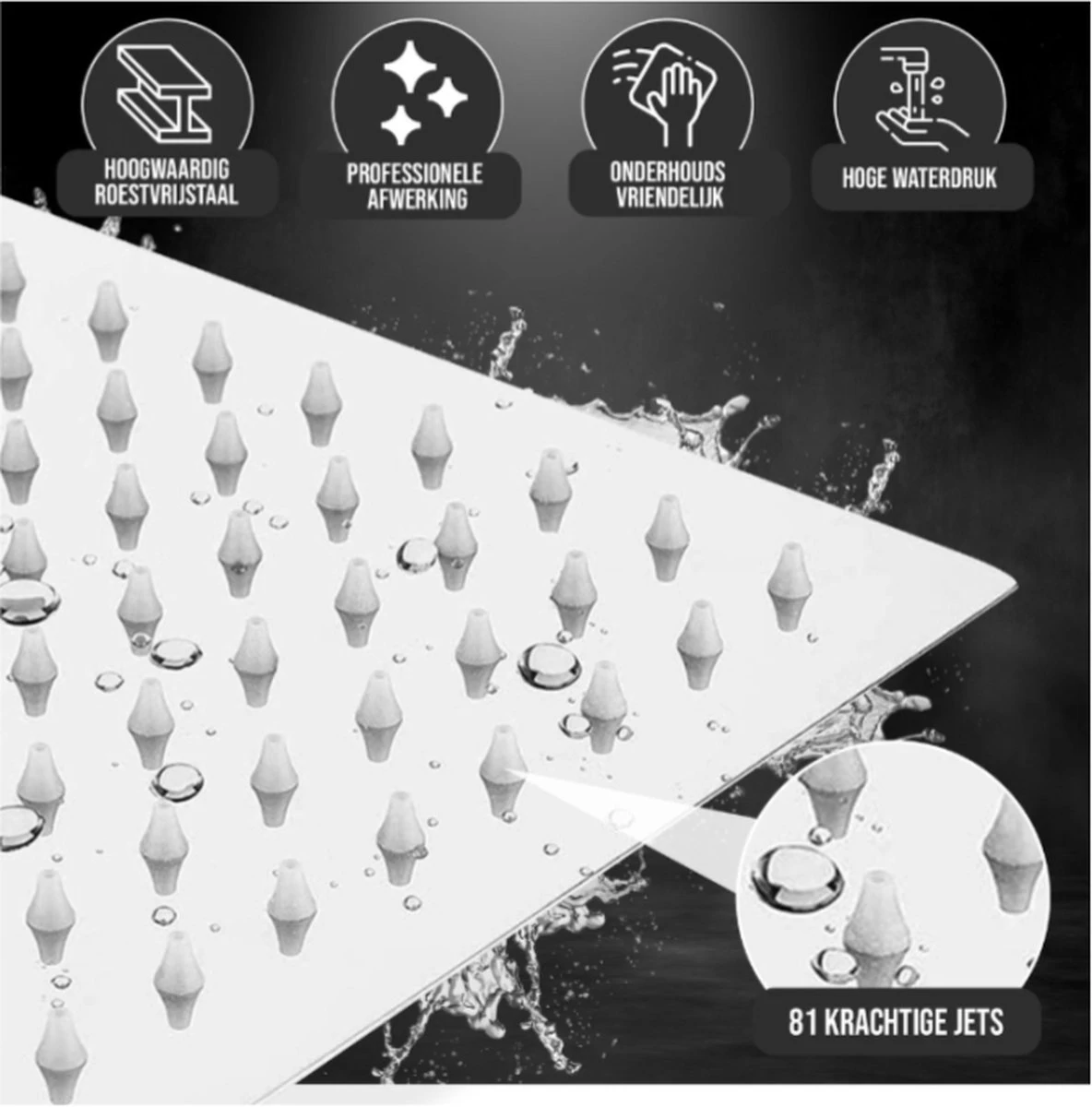 Na een lange stressvolle werkdag helpt het vaak om onder een warme douche te stappen. De Regendouchekop veranderd je badkamer in een wellness-spa en helpt je de stress tegen te gaan. Het effect doet zowaar denken aan het besprenkeld worden door een tropische waterval. De Regendouchekop zorgt hierdoor voor een compleet andere ervaring tijdens het douchen. De douchekop heeft een afmeting van maar liefst 35 bij 35 cm. Hiermee is hij zo’n 5 keer groter dan een normale douchekop. Dit grote oppervlak zorgt ervoor dat het water meditatief over je hele lichaam besprenkeld wordt, alsof jij een waterval in je eigen douche hebt!