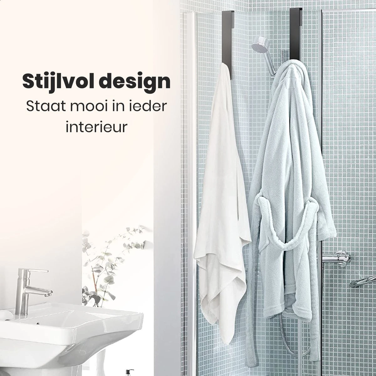 Onze haken zijn niet alleen functioneel, ze zijn ook stijlvol. Met een strak en modern design zullen deze haken de uitstraling van je douche- of badkamer versterken. Bovendien super snel en gemakkelijk te instaleren. Hang ze gewoon aan je douchewand of douchedeur en ze zijn klaar voor gebruik. Geen gereedschap of speciale vaardigheden nodig.