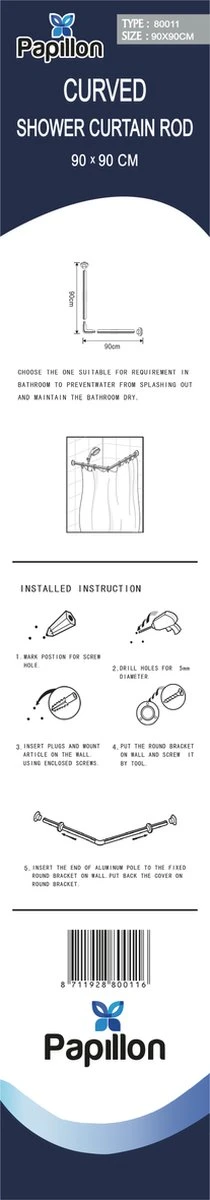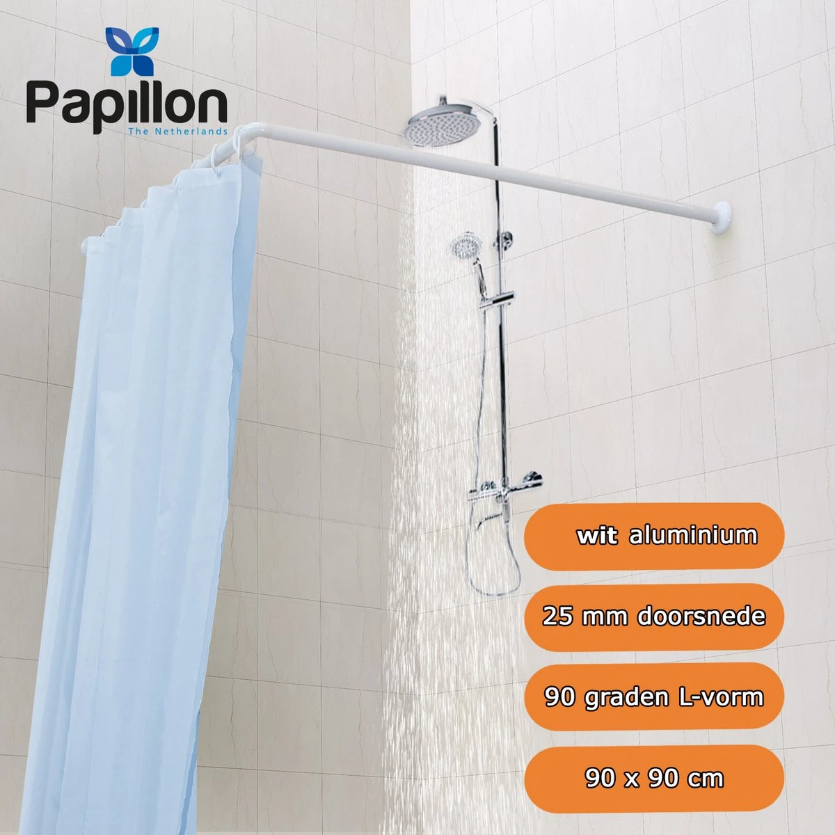 Zit de douche in een hoekje? Dan is deze Papillon Douchegordijnstang ideaal. De stevige aluminium stang is 25 mm dik en eenvoudig in de hoek als L-vorm op te hangen. Geschikt voor elk douchegordijn.
