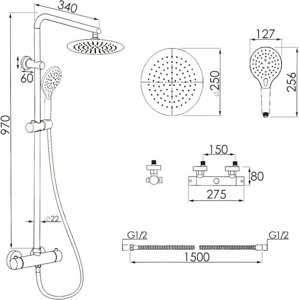 Diameter hoofddouche: 25 cm