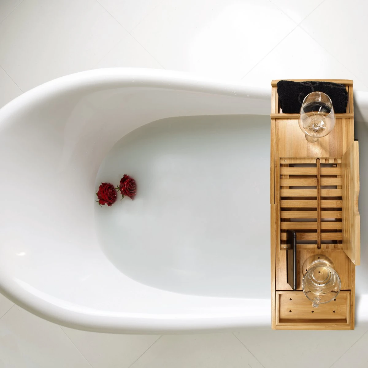 Regno Badplank Voor In Bad – Met Badkussen – Uitschuifbaar En Waterbestendig Badrek – IPad En Glashouder
