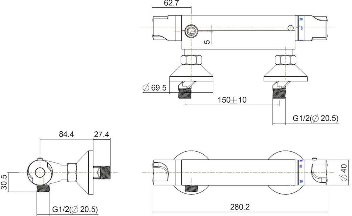 Dankzij het chromen oppervlak is de kraan goed schoon te maken en hechten bacteriën zich niet aan de thermostaat. Het chromen ronde design van de douchethermostaat past in vrijwel elk badkamer interieur.