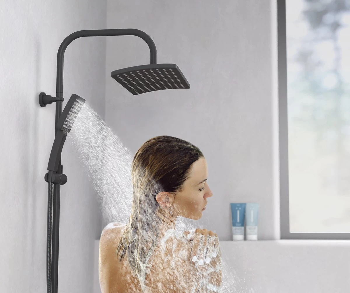 SCHÜTTE Mallorca Douchesysteem – Regendouche – 95 Cm Stang – Wandhouder In Hoogte Verstelbaar – Mat Zwart
