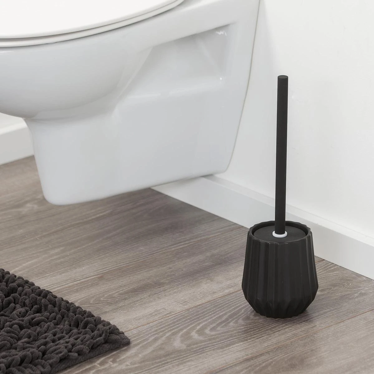 Deze toiletborstel met houder mag er zeker zijn. Zie je die welvingen? Die zorgen voor mee textuur en dynamiek. Speels maar ook functioneel. De steel heeft namelijk een rubberen deksel voor meer hygiëne.
