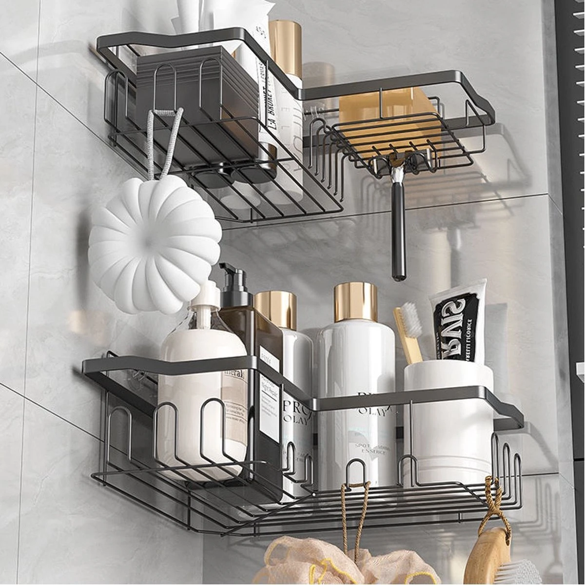 De rekjes komen in twee verschillende formaten. Je hebt natuurlijk de keuze beiden in de badkamer te hangen voor alle shampoos en conditioners, maar ze zijn ook ideaal voor je kruiden collectie in de keuken.