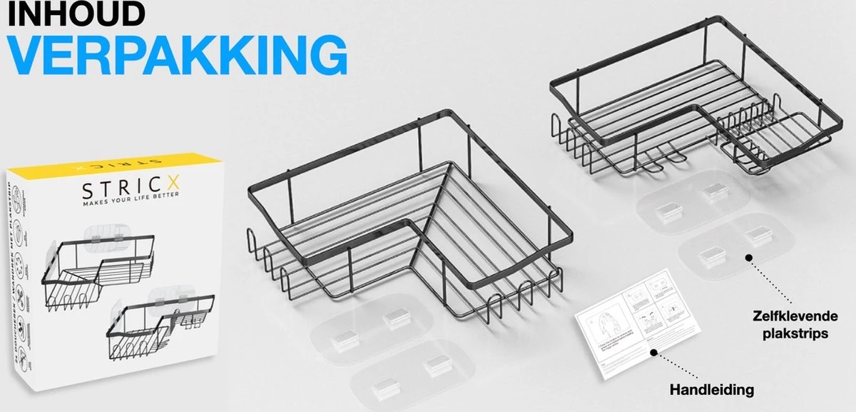 Opgeruimd staat netjes met deze multifunctionele doucherekken van STRICX! De twee formaten rekjes zijn ideaal voor de badkamer en keuken. Het moderne RVS is uitgevoerd in een tijdloos matzwarte kleur, geschikt voor elk soort interieur. Ieder doucherek kan ook simpel bevestigd worden met de bijgeleverde zelfklevende plakstrip, zonder te boren dus! Jouw huis is een thuis met STRICX!