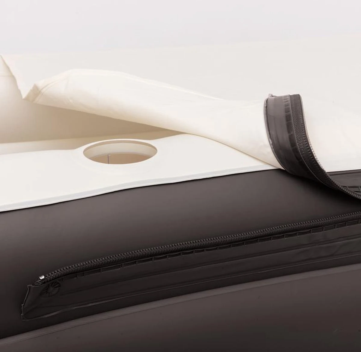 Met de meegeleverde elektrische pomp en de auto-inflator is je Tubble in minder dan een minuut opgeblazen. Na gebruik laat je het bad leeglopen met de geïntegreerde afvoer. Je hoeft alleen maar de stop eruit te trekken en het water stroomt weg. Net als bij een standaard bad. Hierna kun je de Tubble stijlvol opbergen in meegeleverde opberghoes.
