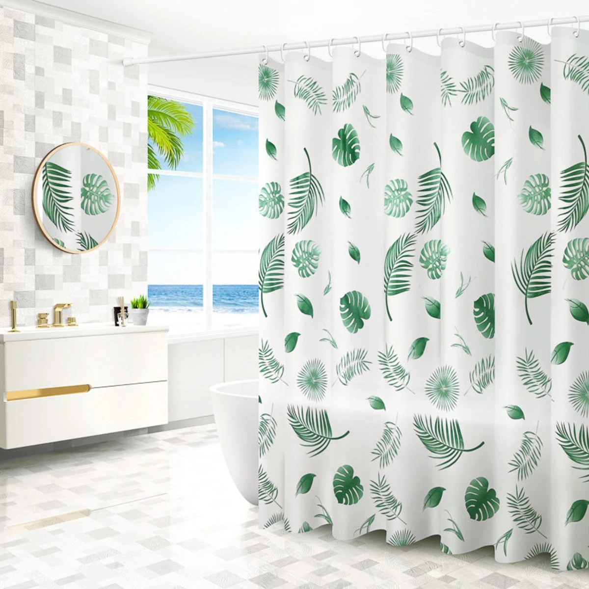 VAIVE Douchegordijn Groen 180×200 – Anti Schimmel – Douchegordijnen – Ringen