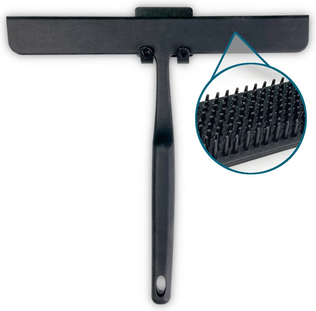 Met deze Vannons douchewisser met ingebouwde borstel is het verwijderen van kalkresten en viezigheid op ramen en douchewanden een eitje. De siliconen douchetrekker ligt stevig in de hand en je kunt borstelen met de siliconen borstel. Door de douchewisser simpelweg om te draaien kun je water en zeepresten weg trekken.