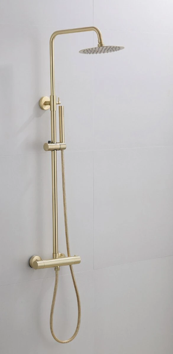 Heerlijk douchen begint met een fijne regendouche met een krachtige waterstraal. Met de Wesseling & Bos Atlanta Mat Goud Geborsteld doucheset voeg je eenvoudig genot én een luxe upgrade toe aan jouw badkamer.